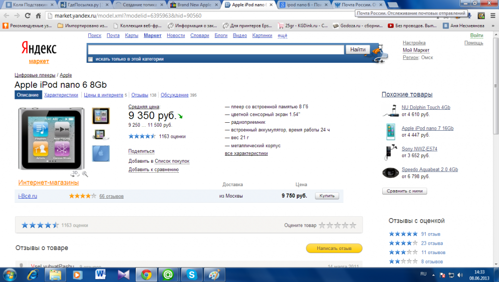 Хочу рассказать о очередной покупке из США. Это iPod nano 6. Преобреталось это устройство для моего друга, по его просьбе. Он абсолютно новый. Он давно хотел себе маленький плеер, т.к. с его ipad'a слушать музыку и к примеру бегать одновременно довольно таки неудобно. Почему именно iPod, а не другой плеер? Потому, что фирма apple выпускает очень качественную, долговечную и красивую(элегантную) технику. Единственный минус -цена в России. Уж очень она высока. Именно поэтому приходится обращаться в магазины за границой. Итак, расскажу о самом процессе покупки и доставки. Первым делом (самое сложное) я нашёл подходящий товар. Мне была важна цена, тип доставки, цвет и объём памяти. Когда я нашёл подходящий вариант я созвонился с другом, он посмотрел и дал согласие на покупку. Я провёл оплату и уже на следующий день продавец отправил посылку, а мне написал номер отслеживания, по которому я мог смотреть где находится посылка(в картинки закину скриншот с сайта, на котором можно увидеть как шла ко мне посылка). Через 20 дней мы с другом пошли на почту и забрали посылку. Друг доволен)
