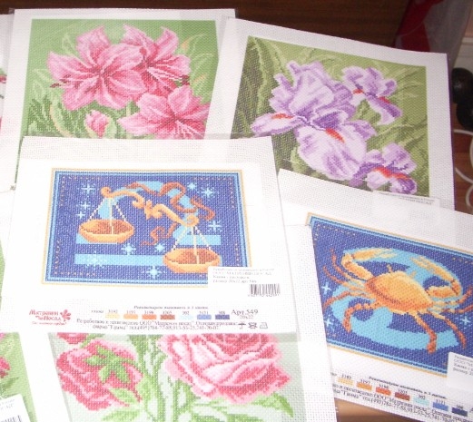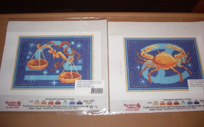 Моя мама увлекается вышиванием, и я купила ей канву с уже нанесённым рисунком для облегчения процесса вышивания. Когда уже есть готовая картинка, её намного проще вышивать. «Матрёнин Посад» предлагает большой выбор рисунков — пейзажи, цветы, натюрморты, животные, детская тематика и т.п., отличаются они так же и по размерам — можно выбрать нужный тебе размер. Канва плотная, что позволяет её вышивать даже без применения пялец, и рисунок на ней набит ровно — это важно, потому что бывает, что он смешён и не совпадает. Также на канве указано какие цвета понадобятся для вышивки той или иной картинки и сколько — это очень удобно, покупаешь сразу по номерам нитки нужных цветов необходимой длины. Я выбрала рисунки на канве в виде знаки зодиака по гороскопу небольшого размера 20х22 см. Даже в невышитом виде — картинка уже хорошо смотрится, а в вышитом вообще будет супер!