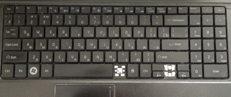 У меня старенький ноутбук пережил тяжелый период))) Когда мой сынок начал ходить и все изучать, его постоянно тянуло к ноутбуку. Он не долго думая взял и начал ковырять клавиши, ну и вырвал несколько кнопок, из них 3 шт, восстановлению не подлежат.