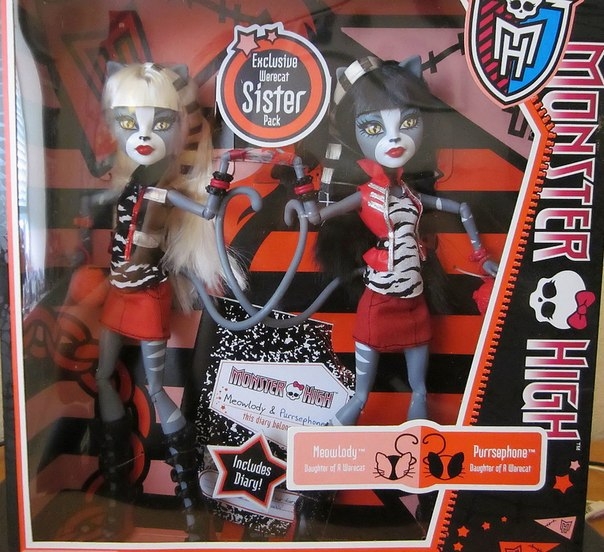 Куклы Школа монстров Monster high Веркошки Мяулодия и Пурсифона