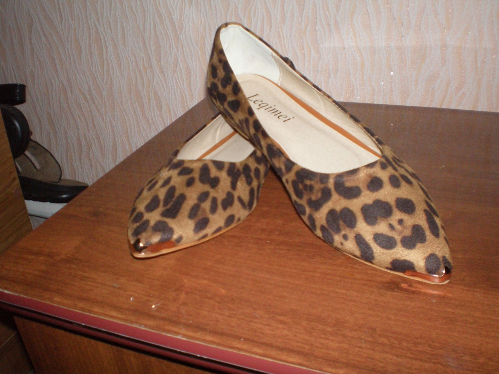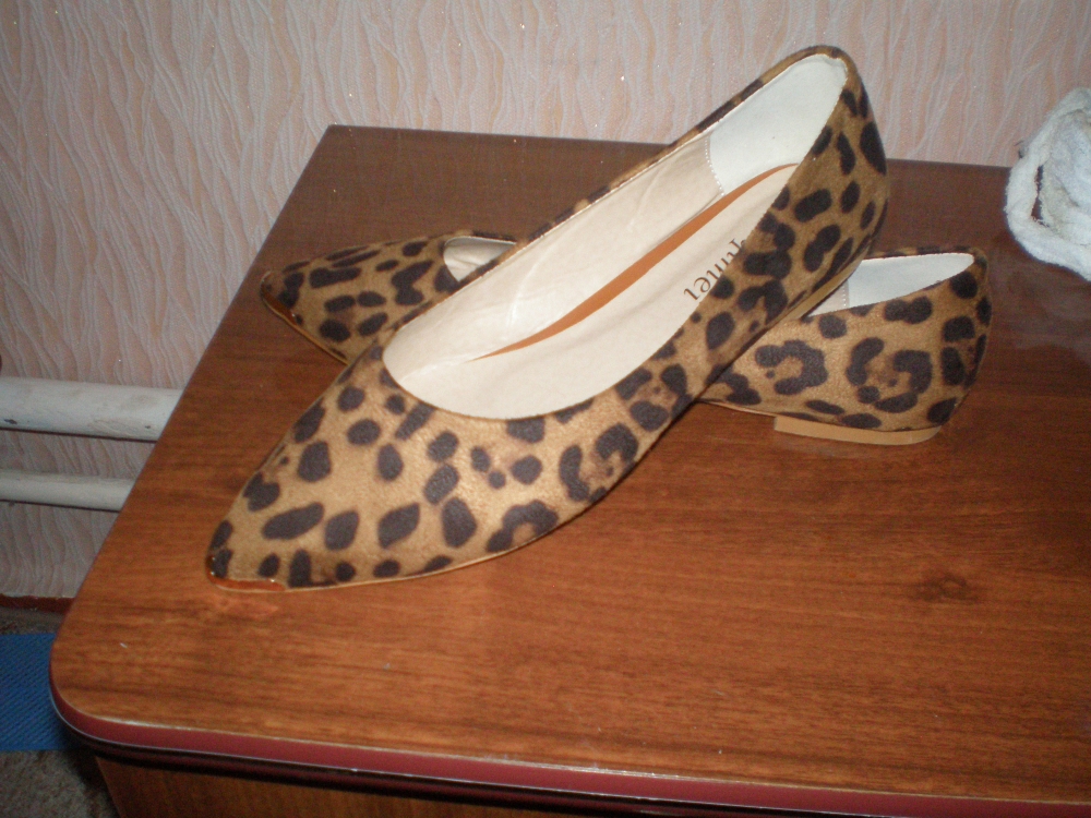 Я обожаю этот принт. У меня очень много вещей леопардовой расцветки, обуви, сумок, а хочется еще и еще. Получила сегодня балетки, с острыми носиками, размер в размер, качество отличное, клея ни где нет, но есть запах(все таки китай). Смотрятся очень неплохо, но в них сейчас жарко ходить, отложу на потом