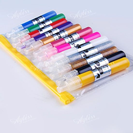 Здравствуйте! Хочу похвастаться своими ручками 3D для рисования на ногтях. Я их покупала одновременно с лаками (прошлый хваст) пол года назад. В наборе 12 цветов. Вообще предназначены для создания 3D рисунков на ногтях. И в описании указано что сушить UV лампой, но у меня ее нет, я просто немного жду когда гель подсохнет и закрепляю прозрачным лаком. Когда гель высыхает, то он на ощупь и при его растягивании напоминает силикон или резину. Но можно применять не только для рисования на ногтях) (Я к примеру на день рождения сыночка разрисовала шарики, и подписала их, получилось очень необычно и интересно) В общем не жалею, что их купила и очень довольна. Чуть позднее что-нибудь нарисую и вложу фото в виде примера если кому-нибудь будет интересно).