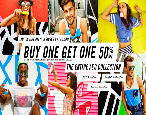 American Eagle Outfitters: купи одну вещь, получи скидку 50% на вторую