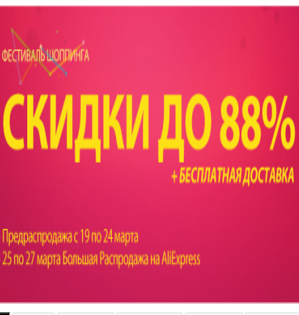 Торговая площадка AliExpress устраивает «Фестиваль шоппинга» со скидками до 88% и бесплатной доставкой!