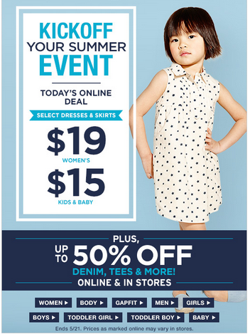 На GAP скидки до 50%, а также только сегодня действует предложение на летние платья по 19$