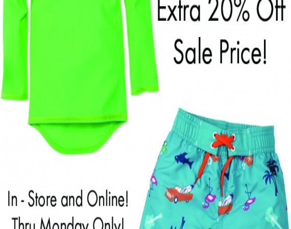 Распродажа летней одежды для купания с дополнительной скидкой в 20%.