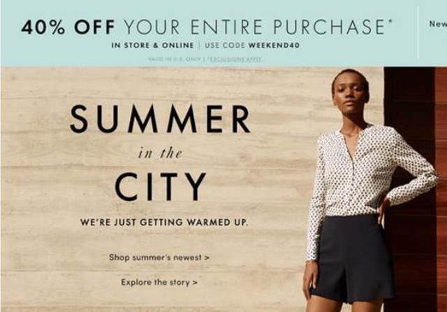 Скидка 40 % на стильную женскую одежду на Аnn Тaylor