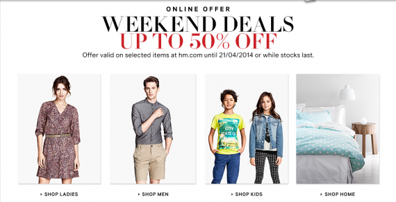 Магазин H&M предлагает скидки выходного дня 50% на одежду для всей семьи и товары для дома!