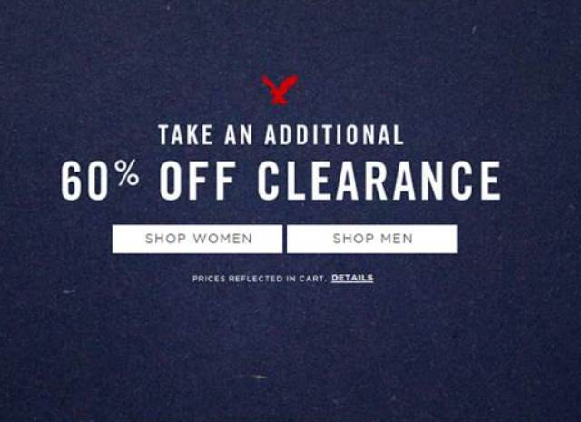Скидки до 60% на American Eagle Outfitters в разделе Clearance на ассортимент одежды