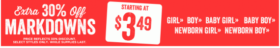 Еще один американский магазин детской одежды Crazy8 радует родителей и их детей дополнительнымискидками -30%! Цены стартуют с 3,49$ — обязательно посетите crazy8.com