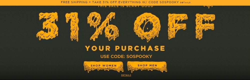 Только 31 октября на American Eagle скидка 31% на женский и мужской ассортимент. Код на скидку: SOSPOOKY